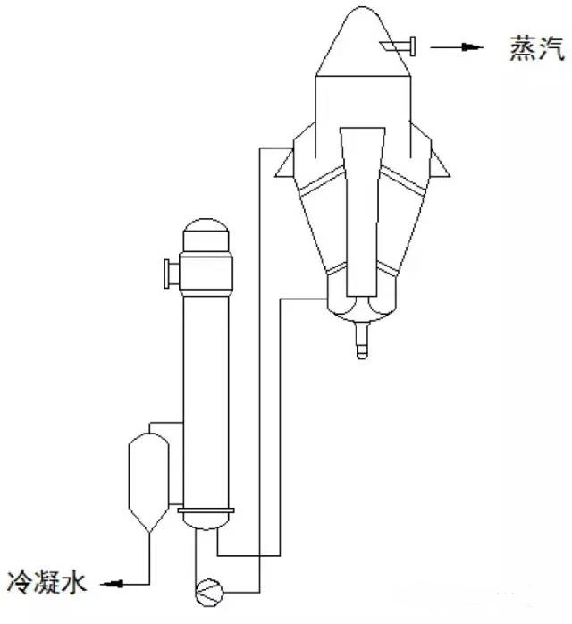 濃縮液落入下管箱,二次蒸汽進(jìn)入氣液分離器。在氣液分離器中二次蒸汽夾帶的液體飛沫被去除,純凈的二次蒸發(fā)從分離器中輸送到壓縮機(jī)。壓縮機(jī)把二次蒸汽壓縮后作為加熱蒸汽輸送到換熱器殼程用于蒸發(fā)器熱源。實(shí)現(xiàn)連續(xù)蒸發(fā)過程。