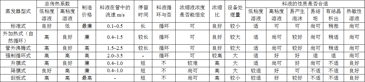 以上選型原則,首要是看其能否適應所蒸發物料的工藝特性,然后再全面綜合地加以考慮。